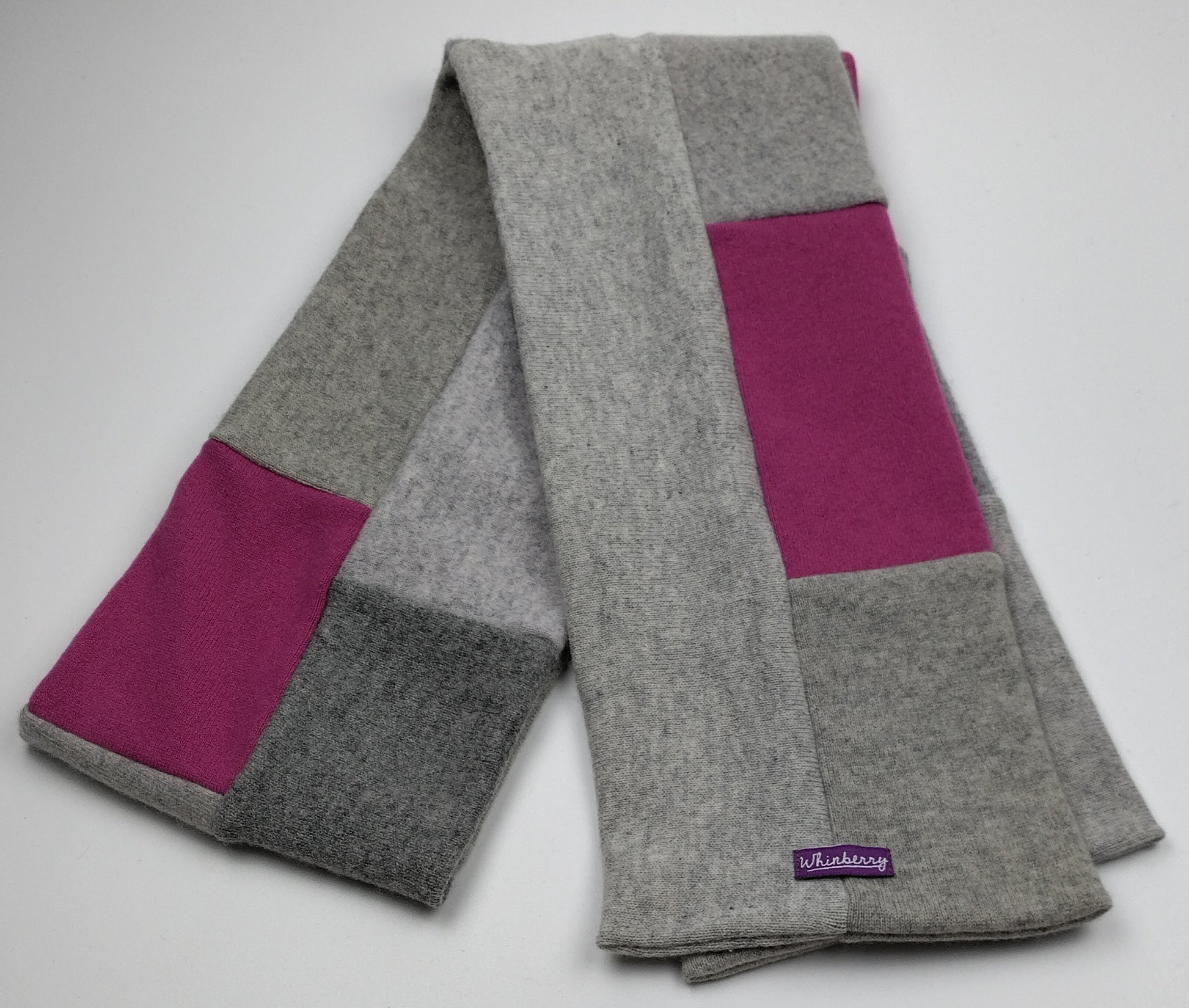 We rescue beautiful 100% cashmere garments that would otherwise be sent to landfill - often because of a small flaw, hole or light mark. Instead of allowing this perfectly usable material to be wasted, we carefully recover the flawless sections and transform them into our handmade Whinberry products. It is recycling in its truest form, lovingly breathing in new life into such a beautiful material.